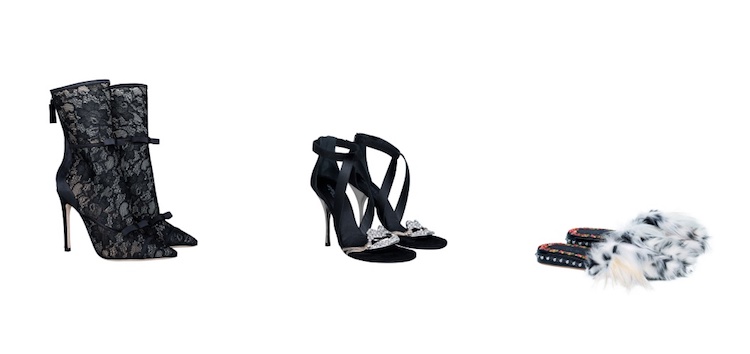 近幾年時尚市場幾乎被球鞋給制霸!但身為訂製服出身的 Giambattista Valli 在這次的聯名中將讓女性在日常的步伐都像走在伸展台!裸膚蕾絲的踝靴,優雅的設計加上個性的純黑配色,不管你用牛仔褲穿搭,還是用搖滾裝搭配都能展現優雅,充滿性感氛圍的高跟涼鞋,則能完美展現女人腳背的性感,對於穆勒拖鞋方便又好搭的特性,Giambattista Valli 在這實穿的單品中加上皮草,讓一雙穆勒拖鞋多了點可愛有趣的氛圍。