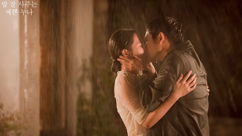 《經常請吃飯的漂亮姐姐》最後一集的雨中和好之吻也是經典!大結局前半段還在吵架,俊熙(丁海寅 飾)主動來找珍雅(孫藝真 飾),兩人在滂沱大雨中和好如初,直接把傘丟在一旁,又親又抱,打打鬧鬧的簡直不要太甜啊!