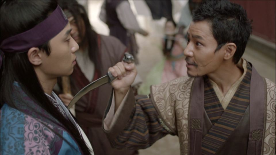 像是這樣逞兇鬥狠的市井人物,李奎炯演起來也是得心應手。拿刀對著朴敘俊,瞪眼耍狠的古裝模樣還挺難見的!