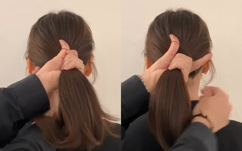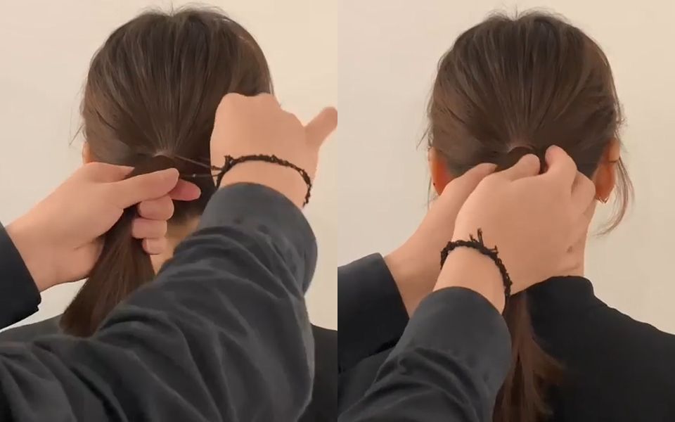 接著可以再稍微調整一下碎髮,讓馬尾更自然,這樣的「繞」綁法不僅更堅固、也不會過度拉扯頭皮,即使是綁這種韓系的低馬尾,也不會鬆鬆垮垮,女孩們也快試試看吧!