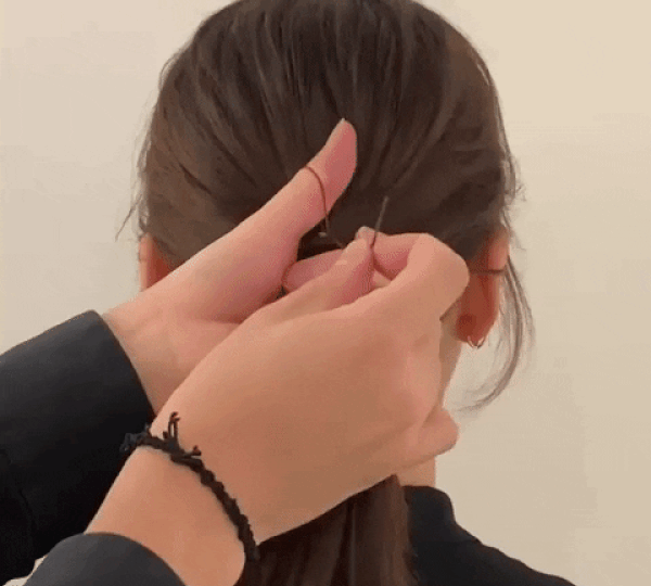 #髮型師綁馬尾步驟3:將小黑夾藏進馬尾裡