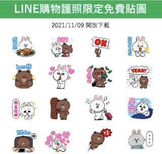 已開通LINE購物護照的用戶,即日起至11月12日每日下午1點至LINE購物護照「11點/11元好康」頁面,即有機會以 LINE POINTS 11點搶購多款好康小確幸商品!雙11當日下午一點至六點,每整點更提供限時限量11元的麥當勞、哈根達斯等美食即享券!此外,LINE購物護照的用戶於11月9日至12月8日止免費下載 LINE FRIENDS 雙11限定版貼圖,身為熊大、兔兔鐵粉的你絕不能錯過!