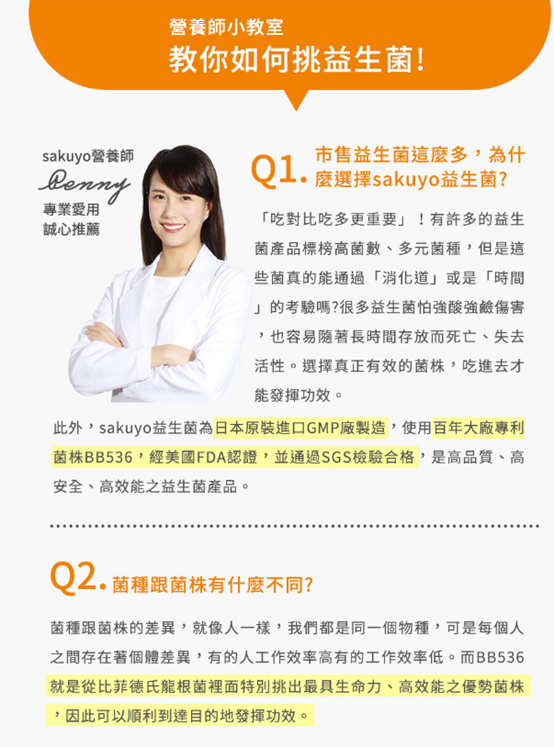 Q1:市售益生菌這麼多,為什麼要選擇sakuyo比菲德氏菌+乳寡醣?