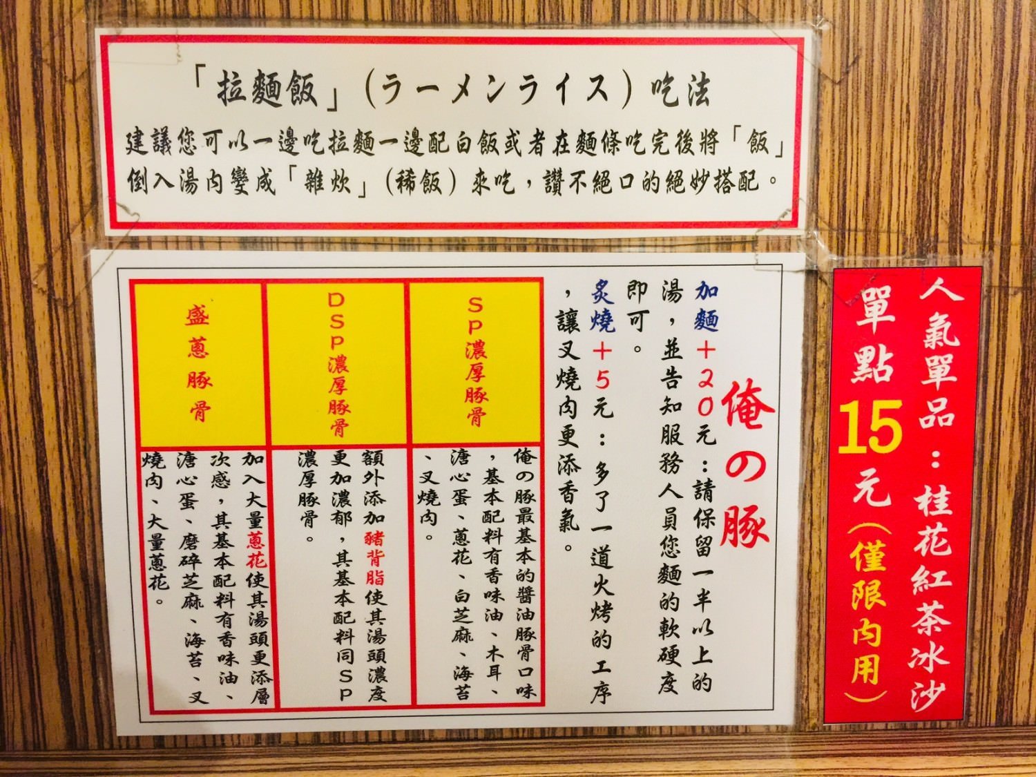 櫃台上貼著俺之豚的推薦吃法: 拉麵飯。