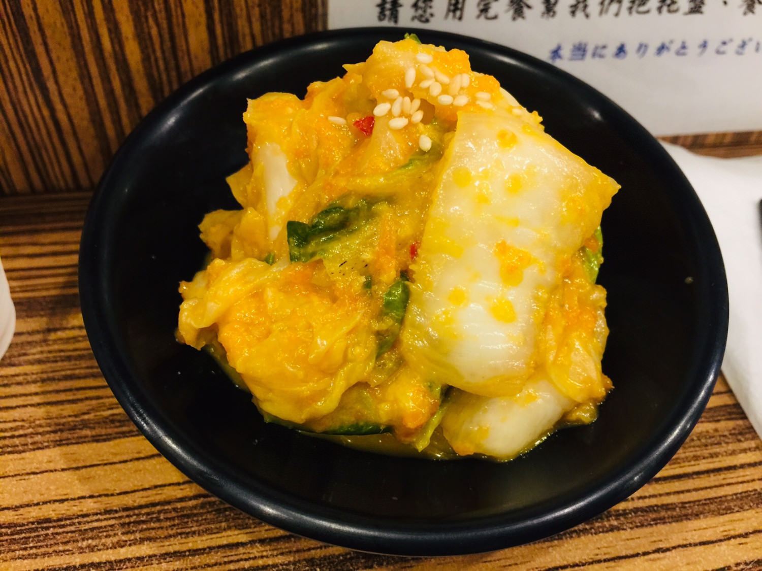 首先是這個黃金泡菜,這道超級入味啊!!! 辣度比較低,甜味中等,白菜一整個是很爽脆,搭配起來真的超好吃。