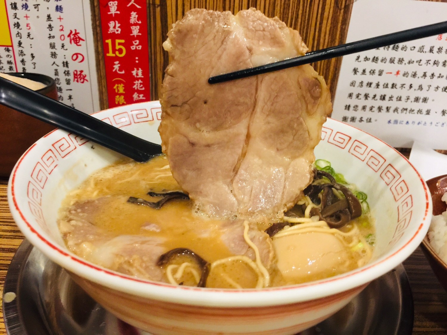 這個豚骨的香氣濃郁,但是不會太過重,我吃過有些豚骨,氣味重到會覺得臭,但是俺之豚的豚骨拉麵完全沒有這個問題。