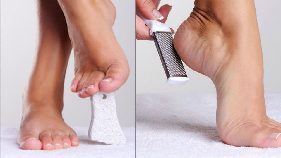 Tips:開始磨腳前,先把腳擦乾。當我們把最硬的死皮都磨得差不多後,稍微淋一點水再磨一次,重複這個步驟。另外,也要特別注意,不要過度磨光腳皮本身的保護層,造成受傷唷!