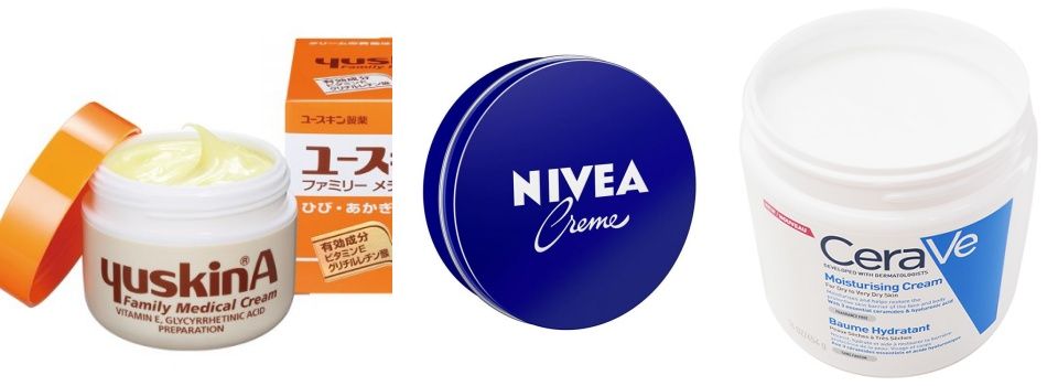 YUSKIN 悠斯晶A乳霜、妮維雅霜 、CeraVe長效潤澤修護霜(左至右)