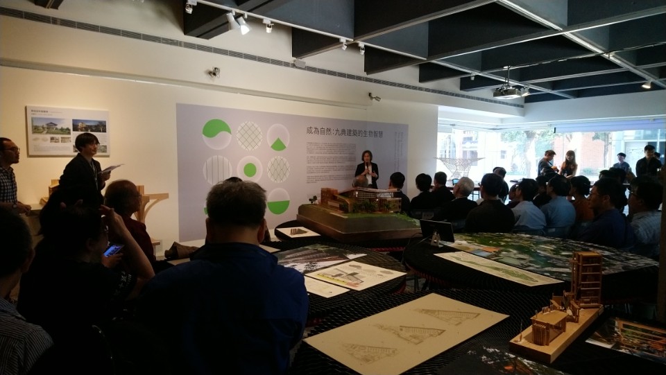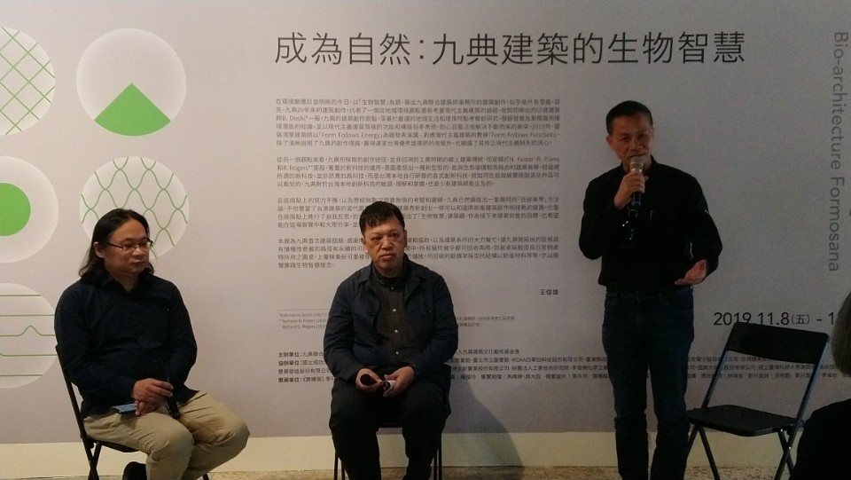 開幕活動也邀請實構築學會長廖明彬主持,邀請吳光庭主任及林聖峰老師進行對談表示,九典建築的20年發展可視為台灣當代建築發展的縮影,如何將「生物智慧」抽象理念,透過建築構造、材料及空間等實驗不斷累積及實踐的過程,過程中也結合學術性研究來加以整合提昇是不容易且寶貴的,而這也正是本次「成為自然:九典建築的生物智慧」特展的策展關鍵。
