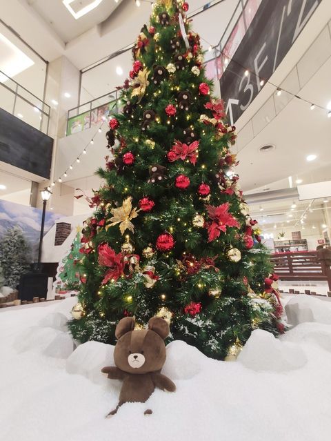 其中高達5米高的聖誕樹更掛滿了小熊學校的玩偶!一旁的木椅以及從日本空運來台的小熊學校玩偶也散落在雪花之中,可以白皚皚的雪地上盡情拍照~