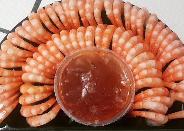chicken on the sea推出擺盤超級豐富的鮮蝦開胃菜,一整盒滿滿的蝦子都已經剝好殼了,遠看超級像一朵花,原來吃海鮮也可以如此的療癒~中間的沾醬,讓原本鮮甜的蝦子帶點酸甜的好滋味,讓你更開胃!大家是不是很想要馬上買一盒來吃呢?