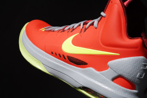 Kevin Durant 擁有頂尖球技與輝煌成就是因為他熱愛生命中的人事物,這樣充滿感恩的態度也成為他簽名系列鞋款的設計核心,最新登場的 KD V 除了呈現他生命中每段鮮明的回憶,KD V 上面 “5” 的意念則是這次設計師 Leo Chang 跟 Kevin Durant 討論後發想的有趣概念,由於籃球場上必須要五個人通力合作才能贏球,因此在第五雙簽名鞋款加入這些元素似乎再恰巧也不過,首先將 “V” 作為鞋舌壓紋,這個字母正是象徵 Kevin Durant 最渴求的勝利,也代表羅馬數字的 “5”;另外在腳踝的背號輪廓還有鞋底刻痕中都能找出五芒星,而鞋底五芒星中的五角形更有另一層涵義,就是 Kevin Durant 家鄉中記憶最深刻的地標五角大廈。外底上則可以看到 KD 最珍視的外婆、雙親還有兄長的姓名,還有從小到大成長足跡所至的地區用代表區碼一一呈現,此外三屆得分王的平均數值還有 Kevin Durant 自身的簽名還有背號,都是不可或缺的元素,逐一審視這些象徵,就能感受到 Kevin Durant 對於他們的重視還有對現有成就的感謝之心。