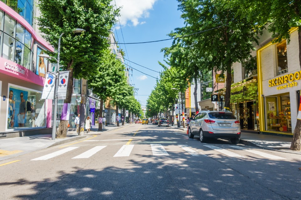 新沙洞林蔭道有許多裝潢精緻的咖啡廳、餐廳與小店,被稱為「藝術家之街」。
