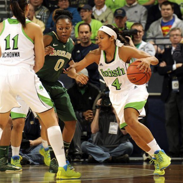 NCAA Fighting Irish 的 Kylar Diggins 著用 adidas D Rose 3.0 “Fresh Prince”