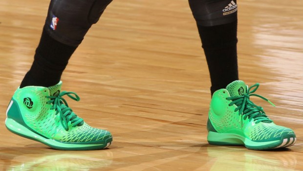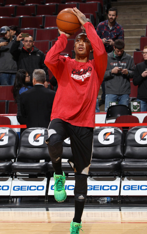 Derrick Rose 著用 adidas D Rose 3.5 “St. Patty’s Day” 進行賽前投籃熱身