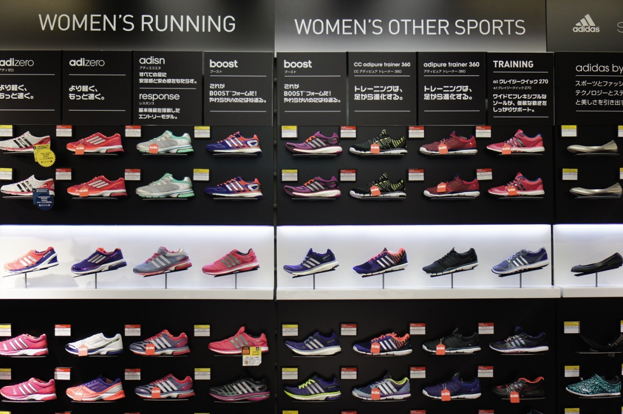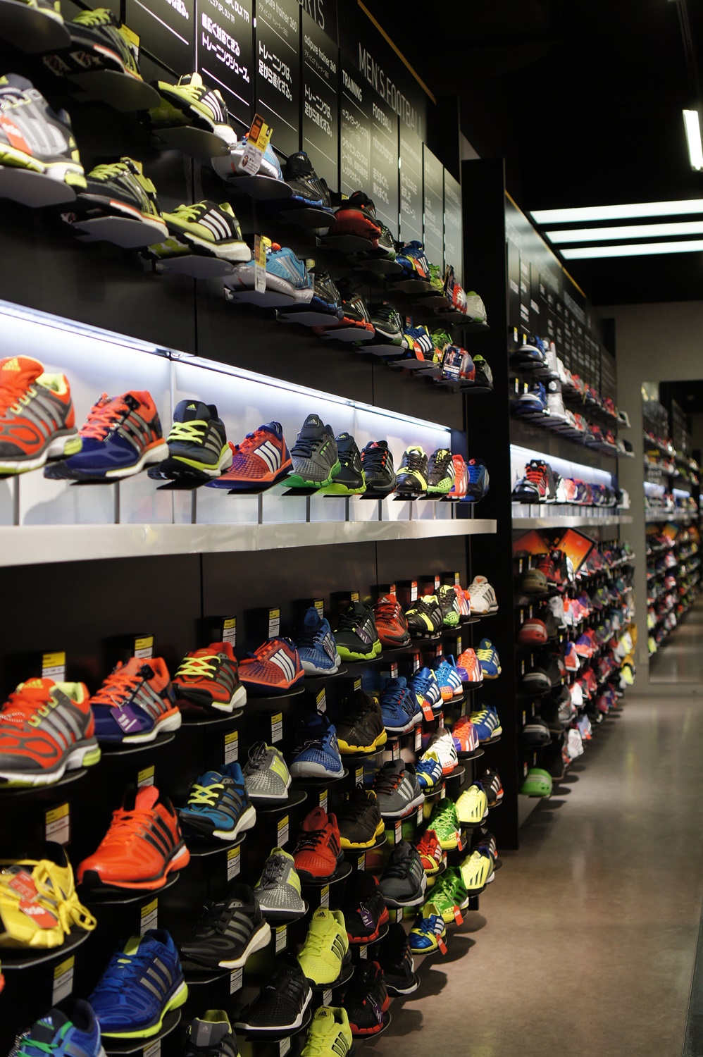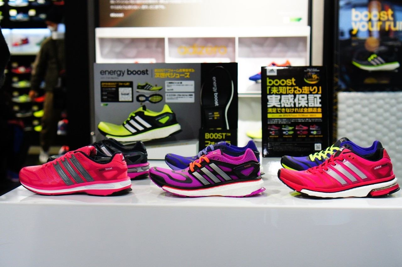 不管什麼運動,選擇適合自己的裝備都是非常重要的課題,想當然爾跑步時腳上的跑鞋就是我們在起跑前必須審慎選擇的,adidas 除了先前介紹的 adizero Takumi 這樣的競賽型鞋款之外,從入門的款式開始都能提供各式跑者做選擇,超過自己的能力或需求選擇跑鞋並不會讓自己變強,反而會有受傷之虞,渋谷旗艦店當中已經先將各類運動的鞋款分門別類的區隔的非常好,但還是可以明顯看出慢跑運動的興盛,在店內除了足球,最多的就是慢跑相關產品。