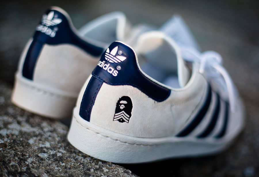 在 BAPE 開始獨立推出自己的系列鞋款的幾年後,2011 年又再度與 adidas Original 展開合作,這款 "B-Sides"系列推出是為了向雙方過去成功的合作企劃致敬。因此鞋身依然用上了麂皮,不過鞋型是以 "Superstar 80’s"來做為發想,黑色線條及後跟部分以海軍藍取代,並置換了鞋身字樣 "Trefle En Chevrons Et Bape",
