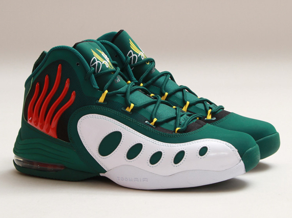 將 Gary Payton 經典戰靴 Air Zoom Flight 98 和 Air Zoom GP 融合在一起的 NIKE SONIC Flight 今回曝光了這款超音速隊配色,以綠色和白色打造的鞋身,搭配紅色的猴爪頗為搶眼,加上黃色點綴的細節讓人聯想起 Gary Payton 在超音速隊的時光,此配色目前已在網站 Concepts 販售,實體店面的販售情報請各位繼續密切注意後續報導。