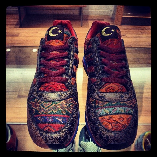 MATERIALS OF THE WORLD 系列的 ZX 500 “Turkey” 鞋面採用土耳其地區傳統家庭手工編織品為面料,整雙鞋以一塊布隨機裁切,因此全球限量 500 雙圖案都是獨一無二的,搭配鞋舌土耳其國徽與鞋面皮質雷射雕刻的細節,說是 MATERIALS OF THE WORLD 系列當中最華麗的一款作品也不誇張,在 adidas Originals 的愛好者當中是一雙擁有高人氣的款式。