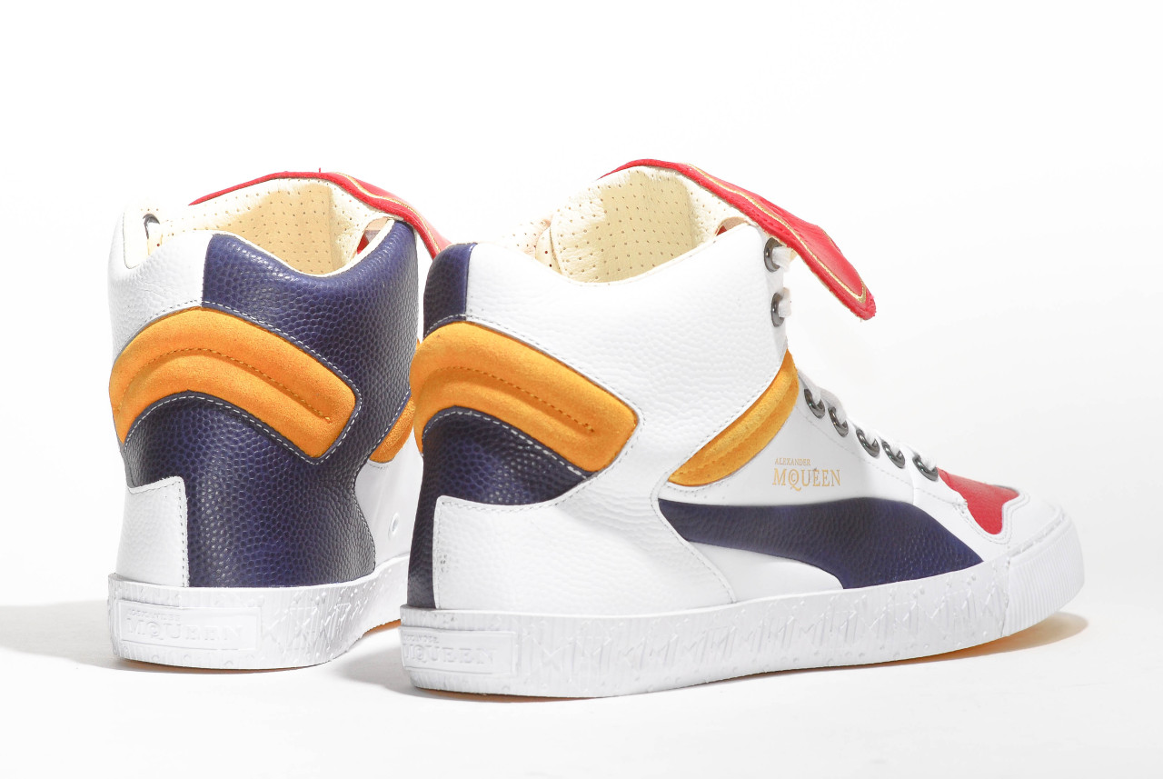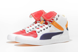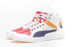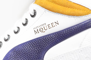 近年登山靴型風格大舉滲入了街頭流行的搭配熱門 Item 之中,本季的 PUMA 與 Alexander McQueen 設計師品牌合作系列再度帶來抉然不同的球鞋風情,事實上 Street Climb 高統版本的腳踝造型,讓人連想到的品牌著名的 First Round 鞋款,那近乎誇飾的飽滿填充在 Street Climb 身上更顯得性感,強烈的艷黃色,不過幾何切削的中底線調仍有濃濃的 McQueen 系列熱愛裝飾的作風,PUMA彎刀標誌無縫線浮凸的皮革效果也是一般鞋款少見的處理方式。