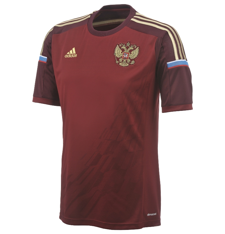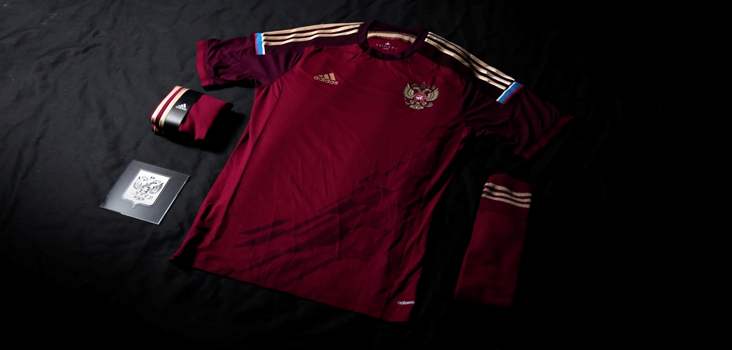 繼承著過去的傳統,俄羅斯主場球衣保留了暗紅主色,而金色的雙頭鷹國徽亦出現在球衣的左胸位置,衣領後的俄羅斯俄文字樣同樣以國旗上紅白藍三色姿態呈現,而球衣上的繁星圖案,也紀念著俄羅斯完成首次人類往返太空的偉大成就。