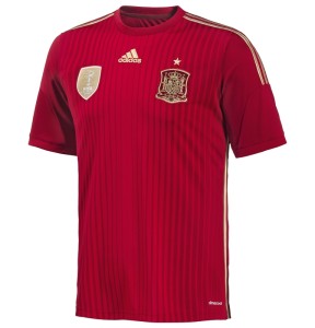主場球衣以紅色設計,象徵西班牙隊團結一致;點點的閃爍金色,代表西班牙足球正處於黃金時代。如今,西班牙現役球隊已是國內當代之星,成為了西班牙年輕一代的榜樣。