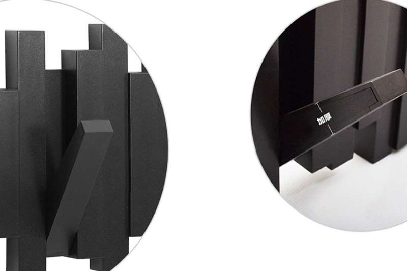 除此外,特別要再強調這組掛鉤的穩固性,它以環保塑膠及纖板合成製作,掛鉤內部使用不銹鋼支撐條貫穿整個掛勾,提供足夠的承托支撐力,並採用厚材料製作,單個可乘載2.3公斤,一組共計四個掛勾,換而言之共可乘載9.2公斤,每個掛鉤都可收合,讓你坐擁衣服堆也能很放心的盡量釣掛,若不釣掛時也能收合成藝術品,擺放不突兀。