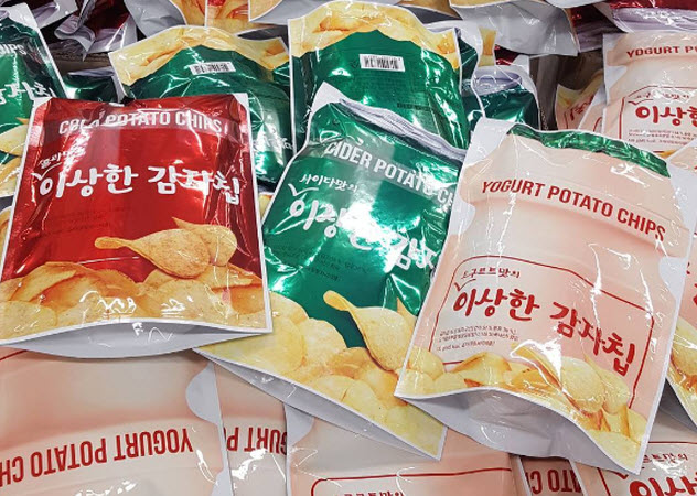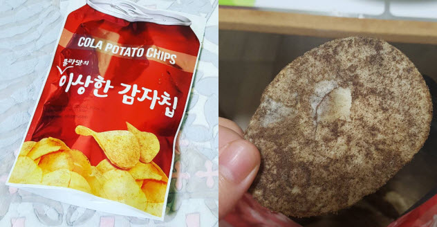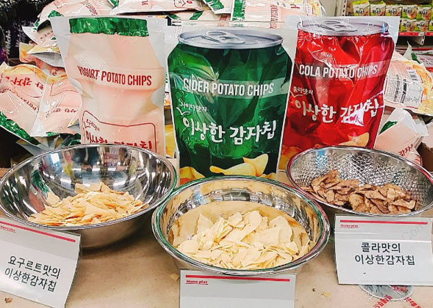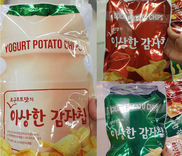 最近韓國Home plus超市最新推出「奇怪的洋芋片 이상한 감자칩」,總共有三種口味,分別是養樂多、可樂與七喜汽水。據網友表示,七喜口味的洋芋片吃進嘴裡有非常微妙的口感,保有原本洋芋片的酥脆,但是又有汽水的甜,至於可樂口味,顏色不討喜外,口味更是令人印象深刻,最正常的莫過於養樂多口味。