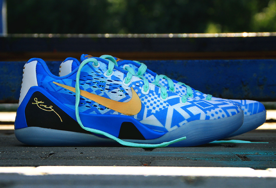 Kobe 9 EM 採用 Engineered mesh 因此在鞋面上能夠透過印刷技術擁有多元圖案,國外稱此最新的配色為 Hyper Cobalt,滿多受歡迎的藍色系鞋款都依此為暱稱,搭配綠色鞋帶與 Dynamic Flywire,今天同步在台灣登場的這個款式為目前的炎熱天氣注入清爽感。