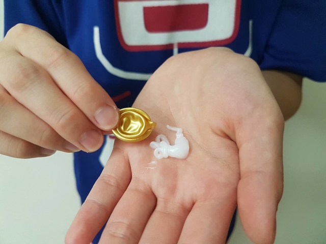 於乾髮時取出一顆塗抹於髮尾,早上起床的一頭亂糟糟的頭髮