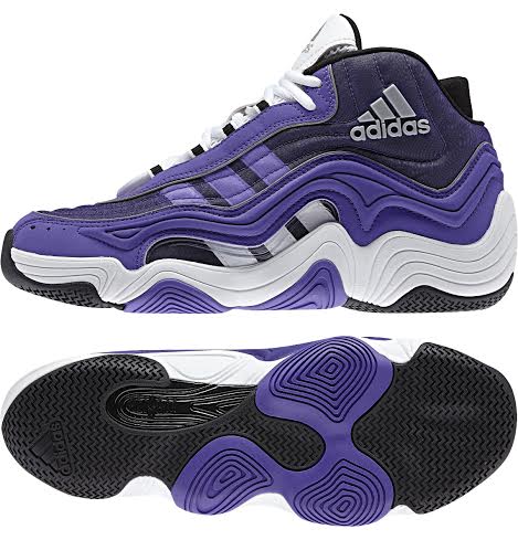 最受注目的黑/紫、紫/白,兩款原版復刻配色,開啟了 90 年代籃球巨星崛起的起點。延伸的人字形大底與大膽的波浪紋鞋面設計,加上網革面板透視出 adidas 品牌三條線標誌。當年的 Feet You Wear 科技幫助支撐腳部當球員進行快速切入、感受服貼場地並更快反應,並風靡一時,復刻的版本則保留分割式的鞋底來向當年設計致敬。