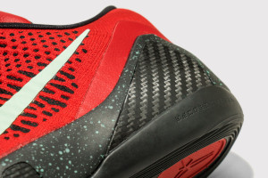 紅色是一種很鮮豔的顏色,有著熱情、活潑、溫暖等等的感受,帶給人十分強烈的視覺效果,眼前這款 NIKE Kobe 9 Elite Low 即以大紅作為主色調,同時以黑為輔,讓 Flyknit 技術與其交織出的紅色花紋更加明顯,象徵著籃球場上球員們熊熊燃燒的鬥志。特別的是,在鞋面的 Nike Logo 、鞋舌的簽名、後跟的縫線標誌,以及中底和鞋帶上的潑墨都具有夜光的效果,讓這雙鞋在暗夜也非常搶眼。