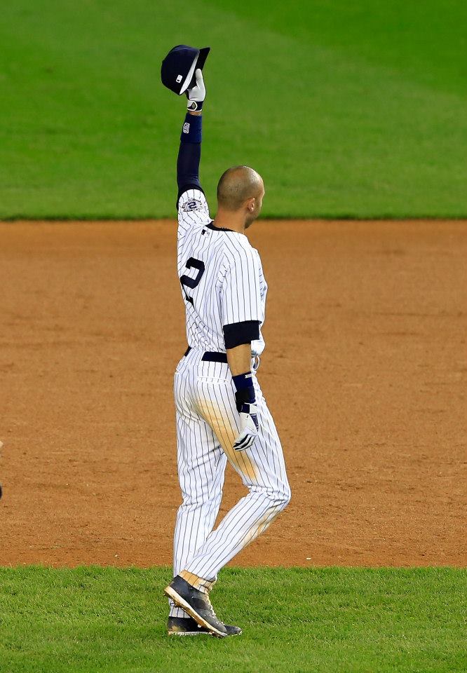 賽後 Derek Jeter 在滿場 46813 名球迷的感謝聲中再次走向球場,並脫帽向到場的球迷們致敬,和大家告別。