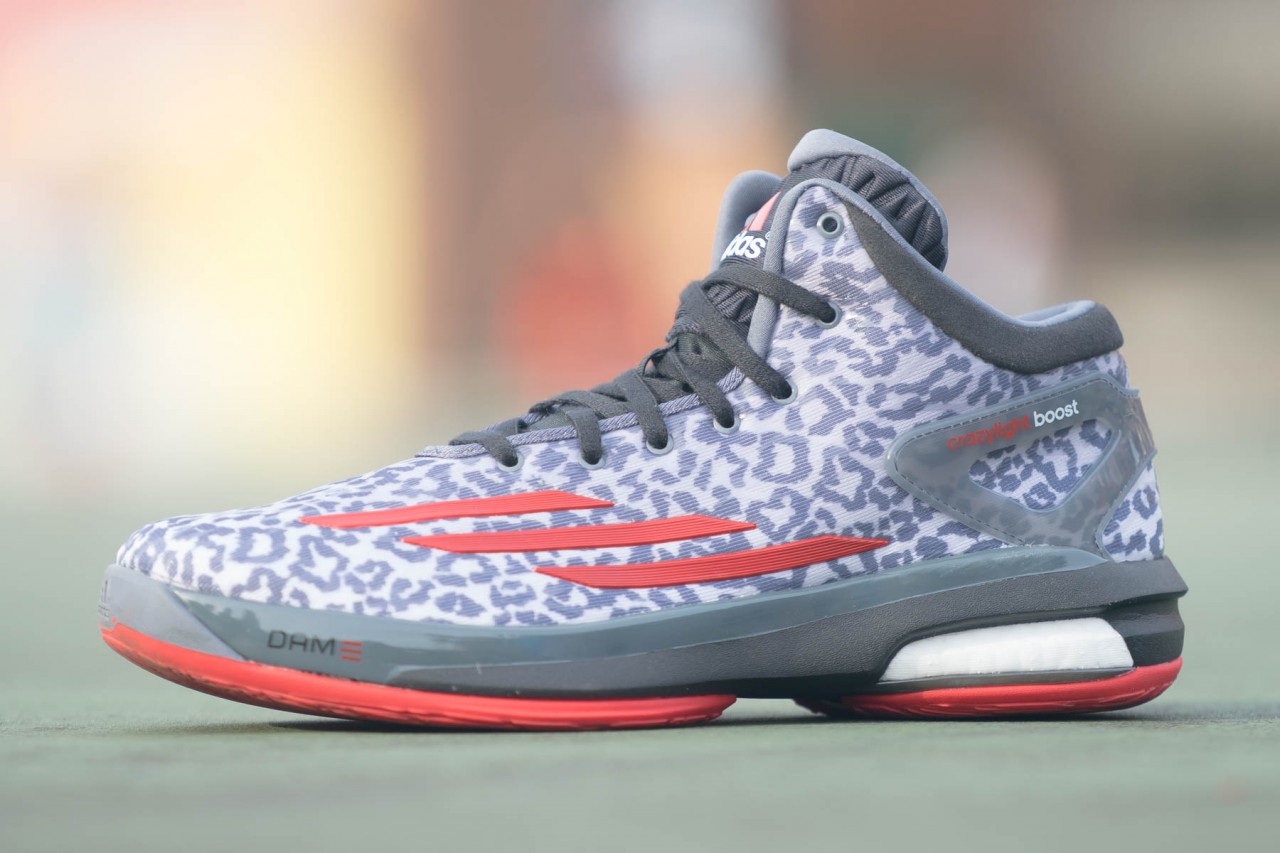 adidas Crazylight Boost 小編的入手的是 Damian Lillard 版本,是由 adidas Basketball 贈送的特殊盒裝,收到的時候還滿開心的,因為個人除了是 Lillard 的球迷,本身對豹紋也有一定的喜好,所以在首波的販售配色中能夠得到這雙讓我非常驚喜,另外也跟另外兩位朋友分別借了目前已經上市的 Ricky Rubio 版本還有全台限量已經幾乎完售的 Battle Pack 來進行拍攝,而據了解 10/6 台灣將會上市 3 個新配色,對 Crazylight Boost 有興趣的勘履者屆時將可以選擇自己喜歡的配色 (們XD) 入手,這回除了鞋面的圖案或是線條特別,個人對於深具速度感的三線標配置相當有好感,讓整雙鞋看來更為銳利。