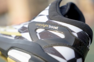 adidas Crazylight Boost 乍看之下是高筒鞋款,但其實由於腳踝切削線條角度極大,穿上後可以感受到雙腳仍有很大的靈活度,因此相對腳踝保護相形更重要,雖然整體的包覆還不錯,在這邊還是要吹毛求疵一下,腳踝支撐設計在慢跑運動的強度或許還足夠,但使用於籃球運動實在還有些進步空間,外覆的 TPU 片偏軟,對於腳踝支撐要求極高的人在試穿時需要多感受一下。另外在 Crazylight Boost 上首先出現的 ShockWeb 鞋面以白話解釋的話就是在鞋面上覆蓋 TPU 塗層,讓原本柔軟透氣的鞋面披上堅韌的盔甲,兼具舒適度還有保護性,穿起來後更能感受到這個科技細膩的地方。