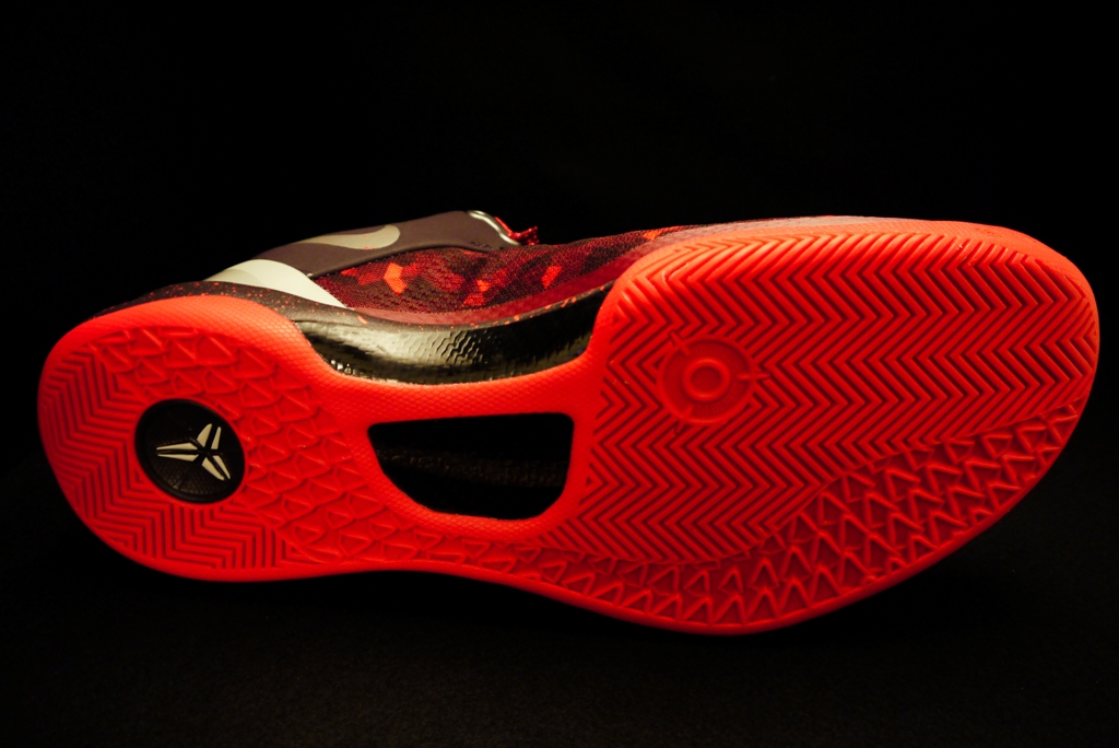 .KOBE 9:外底採用少見的特殊腳掌紋路,紋路與紋路之間隔距離稍大,且主要紋路區塊分布於前腳掌。