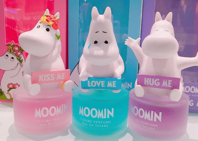 這次推出的嚕嚕米香水有三款造型,分別為「KISS ME」、「HUG ME」和「LOVE ME」,KISS ME是粉紅色嚕嚕米,味道是清爽的蘋果香味,HUG ME是紫色嚕嚕米,味道是甜美的蜜桃柑橘味道,LOVE ME則是流眼淚的藍色嚕嚕米,味道是白麝香。清新香味加上可愛造型,即使擺在家裡桌上當裝飾也很適合喔~