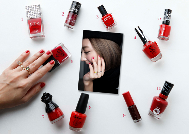 不同層次別的紅色指甲油絕對能滿足妳的造型需求