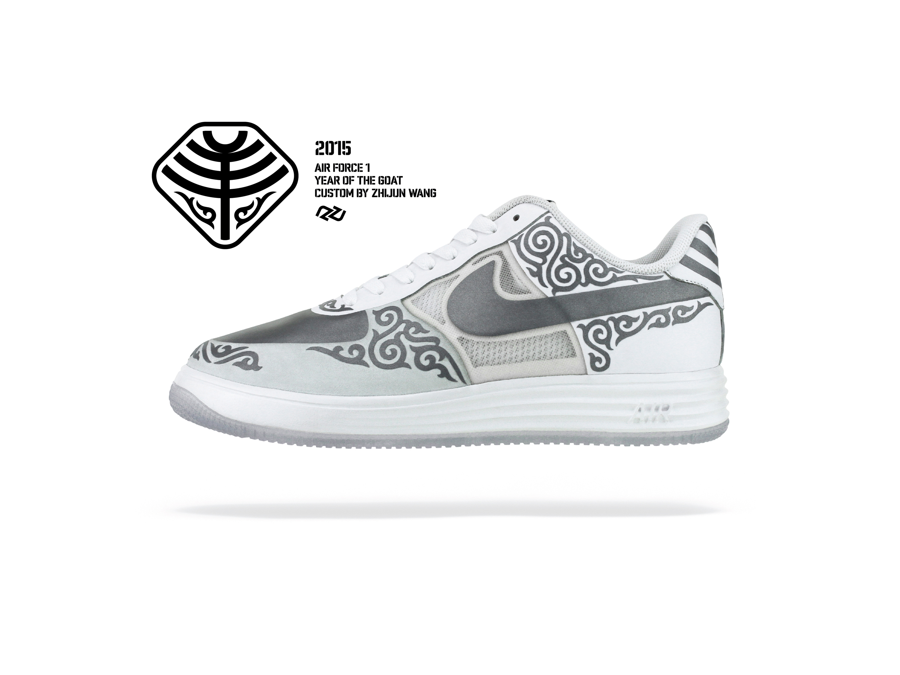 自 2012 年起,中國球鞋客製師王志鈞 (Zhijun Wang) 透過自己的方式定義每年的生肖鞋款,利用雙手設計出更具有中國意涵故事的球鞋。而從過去累積的經驗與想法的激盪後,今年決定利用 3M 反光效果與 Lunar Force 1 來演繹新年。