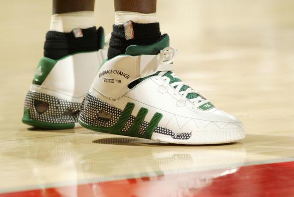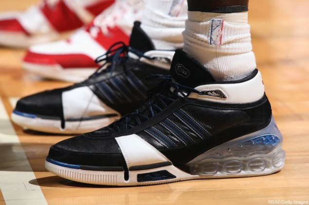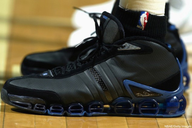 adidas 為狼王打造的第一雙專屬簽名鞋款,其佈滿鞋面的菱形格紋狀在當時也算是較為特別的設計,另外較令小編印象深刻的莫過於當年廣告中,KG 穿著它於街道上行走時將所有人一肩扛起,同時也呼應其全能且無私的球風,此鞋款也正好伴隨著 KG 拿下生涯唯一一座單季最有價值球員(MVP)獎盃。