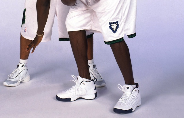 極度神似 Air Jordan 12 外型的 Air Jumpman Pro 系列採用了凝膠外底及皮革面提供穿著上的舒適及耐用性,也是 KG 在當時喜愛著用的飛人系列鞋款之一。