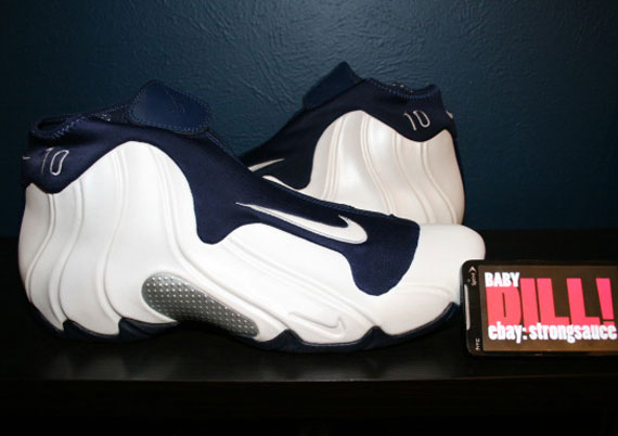 2000 年雪梨奧運時,Nike 替 KG 所打造的 Nike Air Flightposite One PE 版本,腳踝處繡有 KG 效力於美國隊時所選擇的背號,滑順的藍色絨布材質則營造出眾質感。