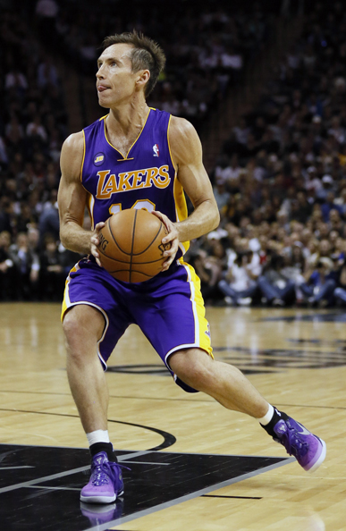 生涯後期僅在湖人隊待上不到三個賽季,即便體能已不再處於巔峰,Nash 仍然希望替這座大城市球隊帶來改變。鞋款方面低筒依然是 Nash 的首選,主要以 Hypergamer Low,同時穿上隊友 Kobe Bryant 的 Kobe 8 與 Kobe 9 EM 為主。