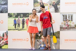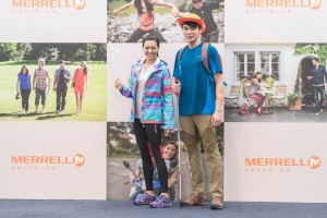 喬喬特別提到 MERRELL 水陸山三棲鞋款的繽紛色彩與流線設計,她今天也以 ALL OUT BLAZE 比較鮮豔的配色做穿搭,並與阿 Ken 一同再度至水池,親自示範鞋款兼具穿搭度與性能。
