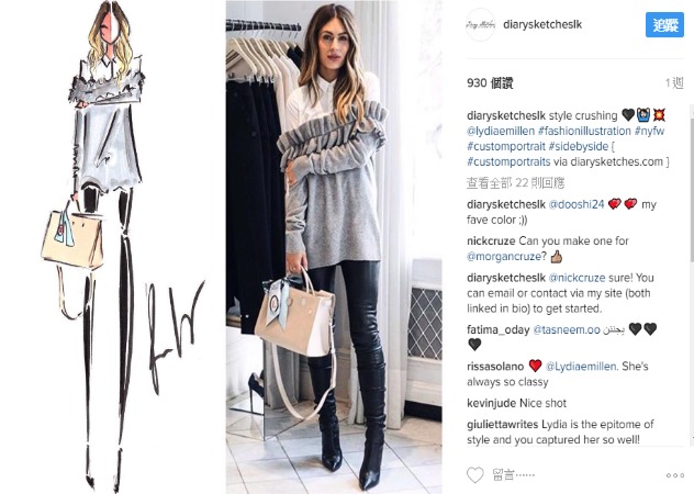 作者也是時尚插畫家,是住在紐約的Laura Kay,畫風簡約,有時還會配上真人穿搭,超級吸睛。穿搭也比較走歐美風,小編本人很愛~