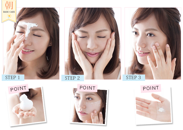 洗臉前請先充分的在手掌中起泡,使用綿密的泡泡洗臉可以對肌膚減少磨擦。洗臉後以按壓的方式擦乾水分。