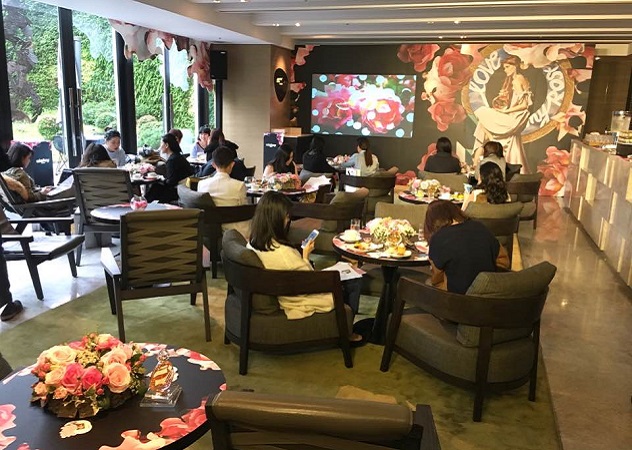 ▲彷彿沐浴在玫瑰莊園裡的Izia記者會現場。