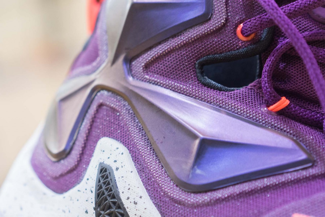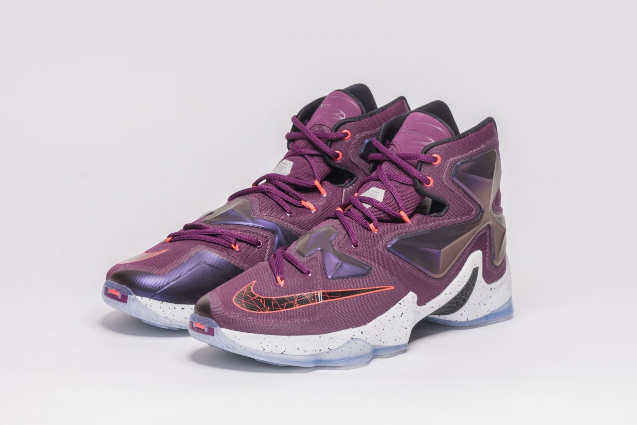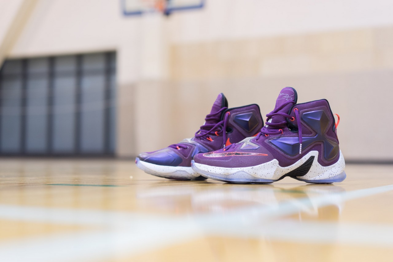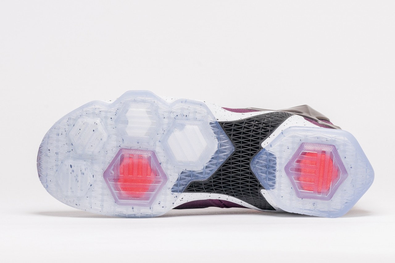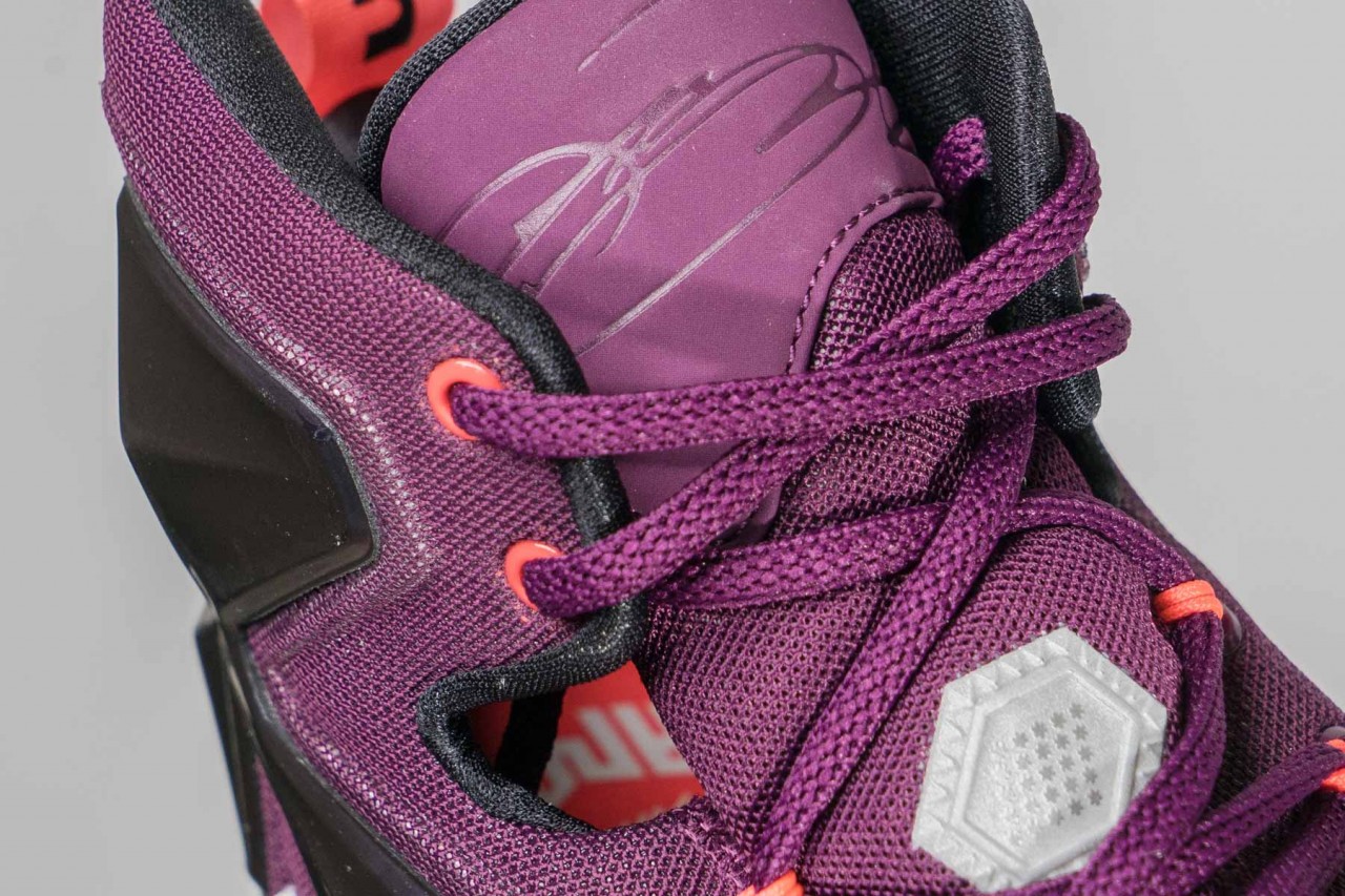 LeBron James 的最新戰靴 LeBron 13,設計上不僅以精準分區化的 Hyperposite 搭配網面內靴合而為一的 Mapped Construction 與 Zoom Air 系統提供最先進的技術,這回設計靈感還將擷取關於 LeBron James 的故鄉俄亥俄州的元素,其中首發的紫色靈感更來自到了夜晚俄亥俄州美麗的滿天星辰,Nike 不僅關注 LeBron James 的比賽、身體素質,在研發最新一代簽名球鞋過程也對回到家鄉球隊奮鬥的 LeBron James 殷切期待好成績的心情轉化為他對周遭元素的關心。