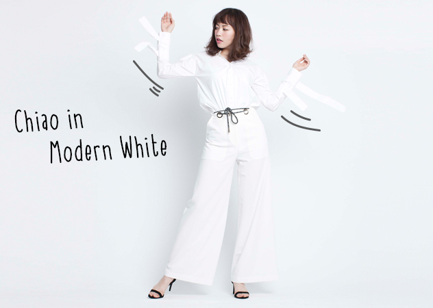 La Feta 白色垂帶袖V領襯衫/NT$6,980、La Feta 白色寬版褲/NT價格店洽、Sophie&Sam 黑色細帶高跟涼鞋/NT$1,280