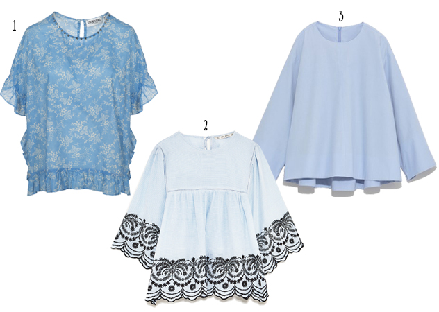 2.ZARA 藍色拼接刺繡罩衫/NT$1,490 對比色的拼接刺繡令人印象深刻。